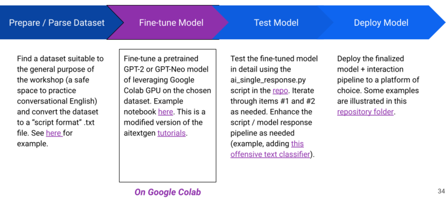 - training a text-generation model. This repo is designed around using the Google Colab environment for model training.